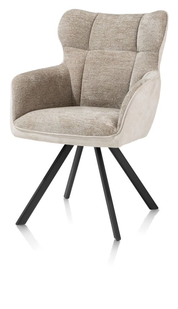 Krzesło JOAH to definicja luksusu i funkcjonalności w jadalni, pochodzące bezpośrednio od grupy Habufa Meubelen (właściciela marek Xooon i Henders & Hazel). Łączy ono elegancki design z niezrównanym komfortem. Krzesło pokryte jest ekskluzywną kombinacją kremowo-szampańskiej mikrofibry Calabria i szenili Enzo. Mikrofibra Calabria, o wyglądzie zbliżonym do luksusowego zamszu, gwarantuje nie tylko wyjątkową wygodę, ale i trwałość oraz odporność na intensywne użytkowanie. Jest także niezwykle łatwa w czyszczeniu, co czyni ją idealną dla każdej rodziny. Wygodna wyściółka z rdzeniem sprężynowym zapewnia doskonałe wsparcie i utrzymanie kształtu przez lata. Krzesło posiada stabilną, obrotową podstawę z czterech nóg z metalu malowanego proszkowo na grafitowy kolor. Detale, takie jak lamówka i zintegrowane podłokietniki, podkreślają jego nowoczesny i elegancki charakter. Model jest dostępny w różnych opcjach tapicerki, dając możliwość personalizacji.