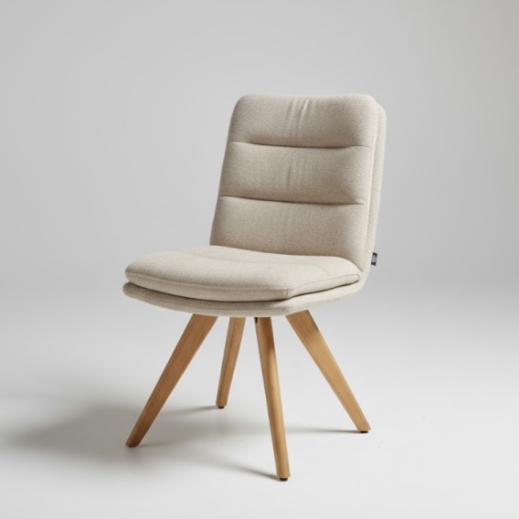 Krzesło Mia to stylowy i funkcjonalny wybór do każdej jadalni. Osadzone na dębowej, centralnej podstawie obrotowej z funkcją automatycznego powrotu, gwarantuje wygodę na co dzień – bez konieczności ręcznego ustawiania.
