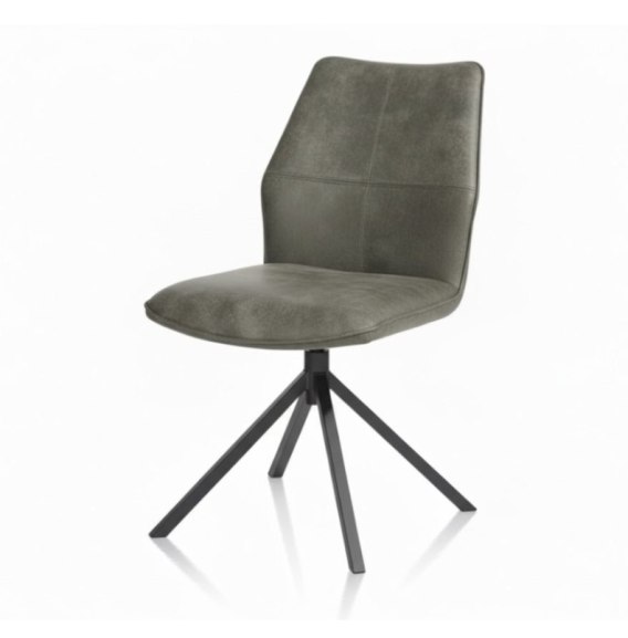 Konstrukcja krzesła opiera się na centralnej, czteronożnej podstawie z metalu w eleganckim, czarnym wykończeniu. Wyposażone zostało w mechanizm obrotowy 360° z funkcją automatycznego powrotu do pozycji wyjściowej, co znacząco podnosi komfort użytkowania. Dodatkowym atutem jest dyskretny, lecz niezwykle praktyczny uchwyt w górnej części oparcia, ułatwiający przesuwanie krzesła bez dotykania tapicerki. Siedzisko ze sprężynami kieszeniowymi gwarantuje wygodę nawet podczas długich spotkań przy stole.