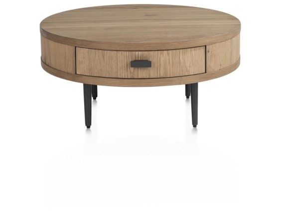 Stolik Kawowy ZADE Okrągły Ø 75 cm, fornir dębowy Dune, 1 szuflada