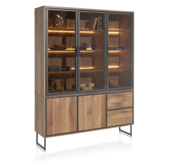 Za jej lekko przyciemnianymi, szklanymi drzwiami możesz stylowo wyeksponować swoje cenne przedmioty, a zintegrowane oświetlenie LED sprawi, że zostaną one odpowiednio wyróżnione. To, co wolisz zachować poza zasięgiem wzroku, możesz schować w dyskretnych szufladach lub za pełnymi drzwiami. Dodatkowym atutem są zawiasy z systemem soft-closing, które gwarantują ciche i płynne zamykanie.